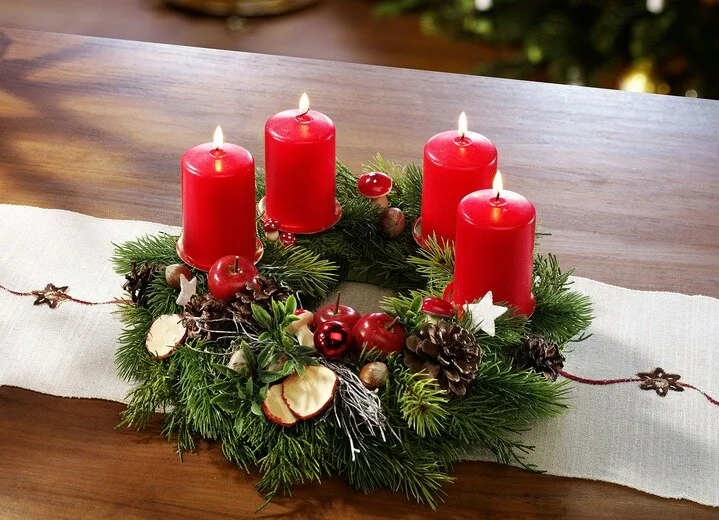 The first “Adventskranz” was placed in an orphanage in Hamburg about two hundred years ago. There were 24 candles on a wooden wreath. Every day, another “Kerze” was “angezündet” until Christmas. Four of them were thicker and were for the Sundays of Advent.